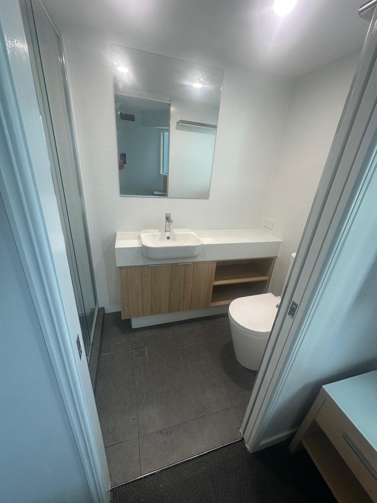 We incorporated a stylish tiled shower niche for convenient storage, upgraded plumbing and electrical systems, and added sleek LED downlights to create bright, modern illumination. To enhance both form and function, a custom wall-hung vanity cabinet with a luxurious stone benchtop was installed, complemented by a new toilet suite, premium Highgrove Bathrooms fixtures and fittings, and precision rectified-edge porcelain tiles throughout for a seamless, high-end finish. Finally, the ceilings were freshly repainted, delivering a clean, invigorated look to the entire room.